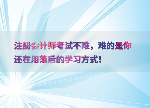 注册会计师考试的难度并非不可逾越,但很多人却因为学习方式落后而陷入困境。
