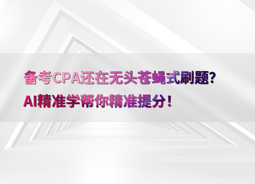 备考CPA还在无头苍蝇式刷题?AI精准学提供全新学习方式,通过分析学员学习数据和掌握情况,精准定位薄弱点,实现高效提分。