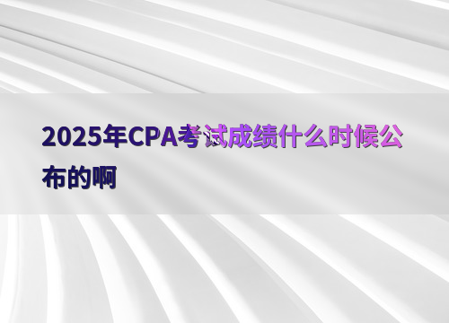 2025年注册会计师考试成绩预计在11月下旬发布,参考近年时间规律,通常在考试结束约3个月后公布。建议考生提前关注官方通知,及时登录系统查询。