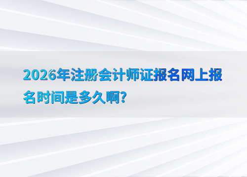 2026年注册会计师考试报名时间为4月7日早8:00至4月30日晚8:00,仅此一次机会,错过需等明年。
