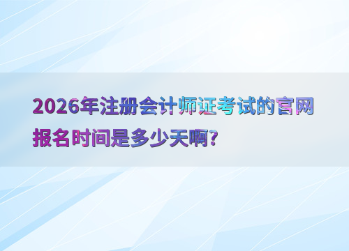 2026年注册会计师考试报名时间为4月7日早8:00至4月30日晚8:00,共计24天。