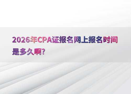 2026年注册会计师考试报名时间为4月7日早8:00至4月30日晚8:00,仅此一次机会,错过需等明年。