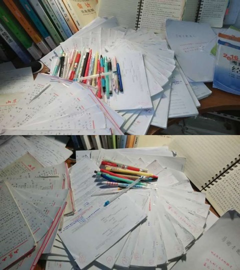 考试前一个月,我感觉到莫名紧张。每天都在图书馆,中午也不吃饭不休息,九点到图书馆,五点回家。每次到家快六点了都饿得不行。那时候体重从变胖了的100斤瘦到了90斤的巅峰。然后次在网上做审计模拟题,得了82分,让我放松了一些。但是会计我却总是不及格,选择题觉得都会但总会有各种理由错一堆。而经济法,还没学完。后来又做审计模拟题,都只是60多分。考试前15天,我去书店买了一本中华的会计应试指南,细致的从头看到尾只用了一周的时间。这让我想到我之前制定计划总是很宽松,但其实逼自己一把,再难的计划也可以完成的。经济法的知识点又碎又杂,背会了还存在混淆的问题,我把它录在手机里,去图书馆的路上不断地听。考试前一周,我到了一种饱和的状态,虽然还有任务要完成,可就是不想学了,我开玩笑的和身边的人说,我这样的要是考不过,谁都别想考过,但其实想想,我也不比别人努力,只是比之前的自己努力而已。饱和的滋味很难受,虽然没有把握,但就是不想学。是我考上研的姐姐鼓励我,让我坚信,即使到后一秒,也不能放弃。后会计审计经济法都能达到一个60多分的水平。我在内蒙古复习,在烟台考试,考试前两天,我回的烟台。走之前我收拾自己放在老姨家的书,各种鼓励自己的小便签,那么多张计划,还有好多重要知识点的小纸,把他们从墙上一点点揭下来的时候,我很舍不得,看着一箱子的书,一本本草纸,满满的笔记,我也觉得自己是真的努力了。如果这次没考过,也就这样了(原谅我这么不堪一击)。
