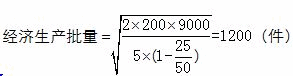 每日供应量P为50件,每日使用量d为9000/360=25(件),代入公式可知: