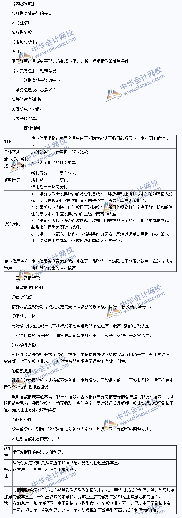 我们一起来学习2013注册会计师考试《财务成本管理》高频考点:短期筹资。本考点属于《财务成本管理》第十五章营运资本筹资第二节短期筹资的内容。