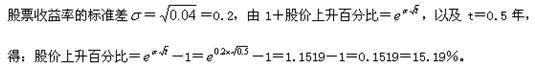 某股票期权距到期日的时间为6个月,如果该股票连续复利收益率的方差为0.04,则采用单期二叉树模型计算该股票期权时,股价上升百分比为( )。
