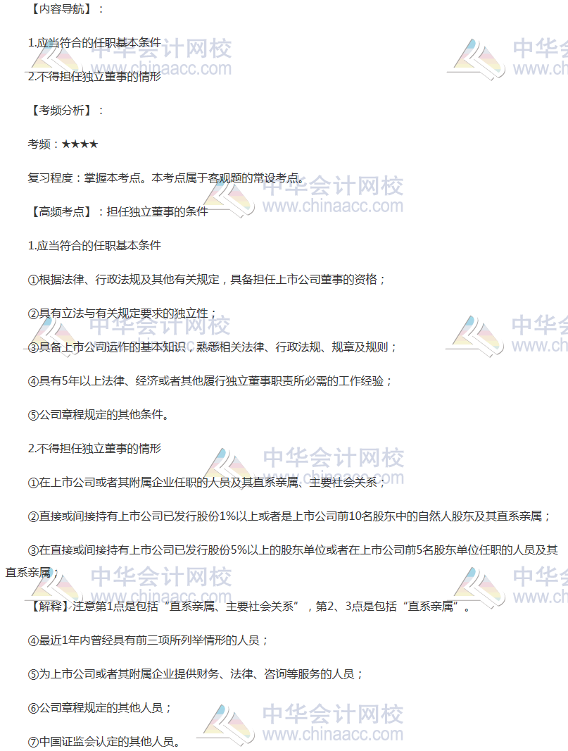 备考时间紧张,抓紧时间抓住重点备考注册会计师吧!正保会计网校教学老师为广大考生整理了高频考点,我们一起来学习2018《经济法》高频考点:担任独立董事的条件。本考点属于《经济法》第六章公司法律制度第二节股份有限公司的内容。