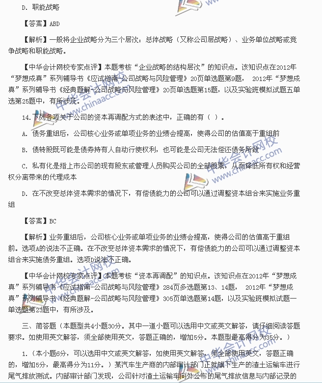 正保会计网校对2012年注册会计师试题和答案进行了整理,并且针对2012注会试题,网校专家进行了解析,祝大家学习愉快,梦想成真!