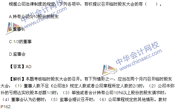 【点评】本题主要考核“公司法律制度”的“利润分配”知识点。该知识点与网校在2015年“梦想成真”系列辅导丛书之《应试指南•注会经济法》168页第25题、《经典题解•注会经济法》161页第24题、《全真模拟试卷•注会经济法》72页第19题中均有所体现。另外,在网校苏苏老师串讲班中提及。
