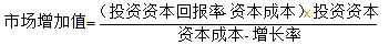 增长率是分母的减项,提高增长率对市场增加值的影响,要看分子是正值还是负值。当公式分子的“投资资本回报率-资本成本”为负值时,提高增长率使市场增加值变小(即市场价值减损更多)。当公式分子的“投资资本回报率-资本成本”为正值时,提高增长率使市场增加值变大。