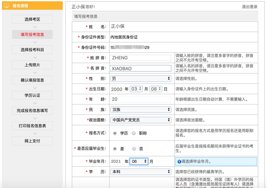 考生应根据考试要求,如实填写报名所需信息,下图为部分报名所需信息。