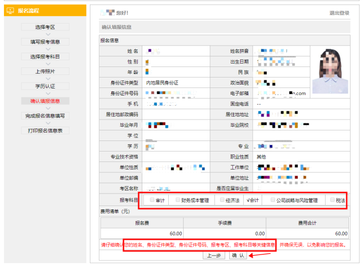 公安部认证身份,考生校对报名信息。请认真核对姓名、身份证号码、报考考区及报考科目等关键信息,并确保无误!然后点击确定,即可完成报名信息填写。
