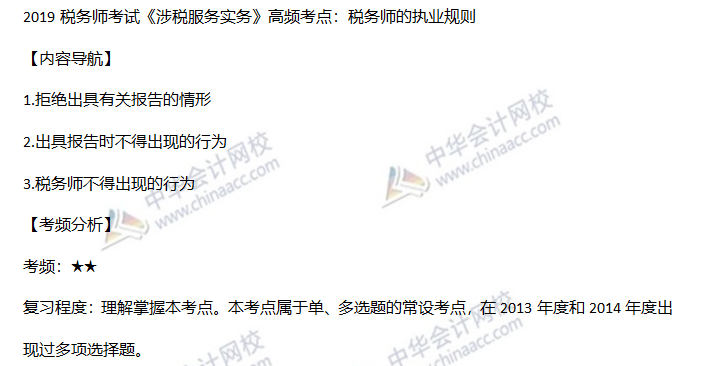距离2019年税务师的考试仅剩一个多月的时间了,接下来这段时间内跟着小编一起来复习一下2019年涉税服务实务有哪些高频考点吧!坚持就是胜利哦~