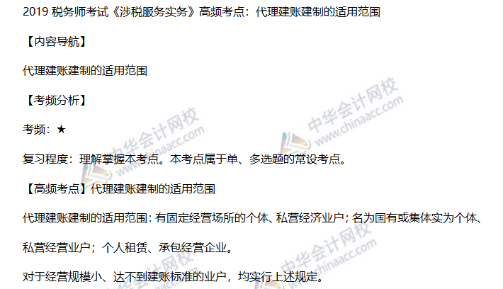 《涉税服务实务》高频考点:代理建账建制的适用范围