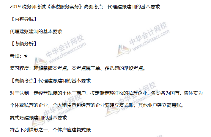 距离2019年税务师的考试仅剩一个多月的时间了,在最后冲刺备考的时间里,大家千万不要盲目的复习,正保会计网校为大家精心准备了《涉税服务实务》高频考点,小编会定期更新,大家记得关注哦~