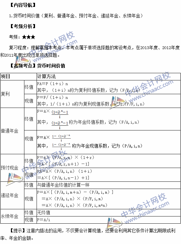 我们一起来学习2015税务师考试《财务与会计》高频考点:货币时间价值。本考点属于《财务与会计》第二章财务估值的内容。
