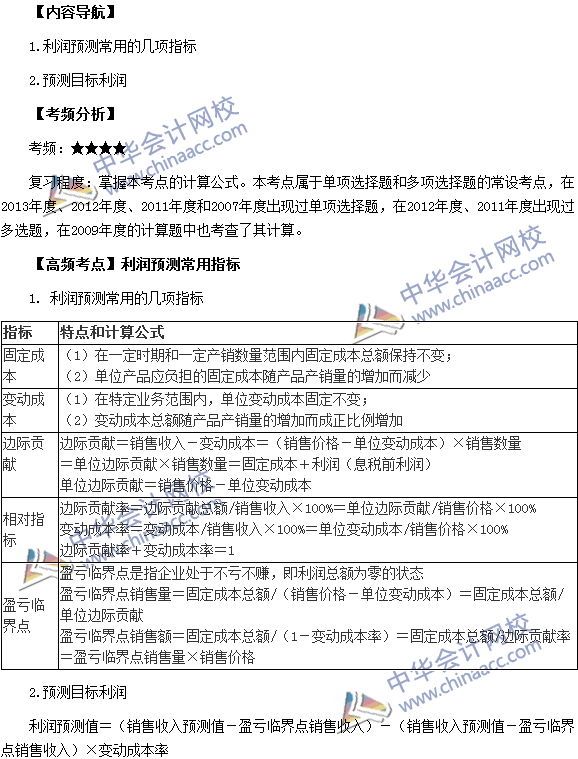 我们一起来学习2015税务师考试《财务与会计》高频考点:利润预测常用指标。本考点属于《财务与会计》第三章财务预测和财务预算的内容。