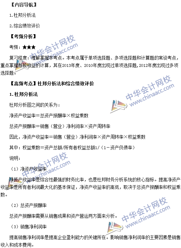 我们一起来学习2015税务师考试《财务与会计》高频考点:杜邦分析法和综合绩效评价,本考点属于《财务与会计》第七章财务分析与评价的内容。