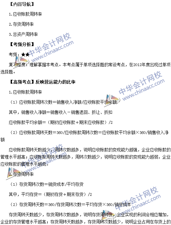 我们一起来学习2015税务师考试《财务与会计》高频考点:反映营运能力的比率,本考点属于《财务与会计》第七章财务分析与评价的内容。