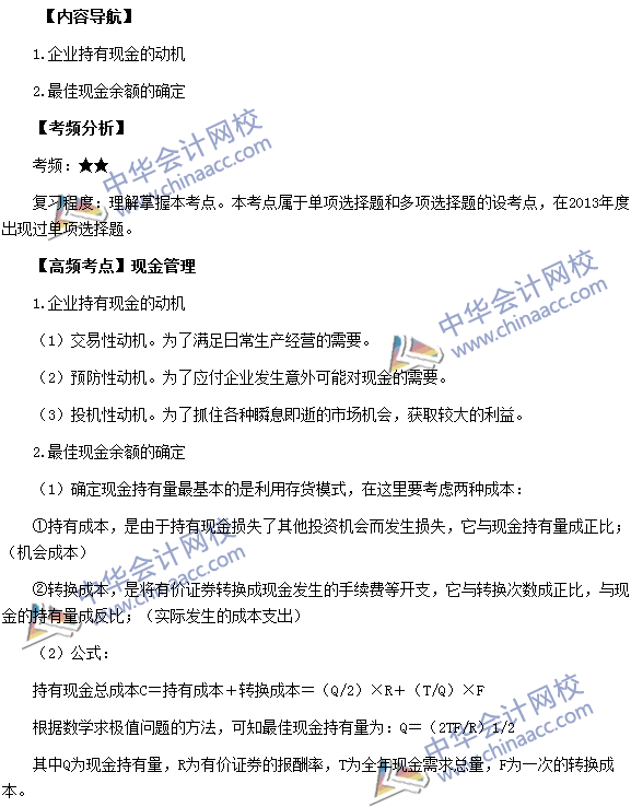 我们一起来学习2015税务师考试《财务与会计》高频考点:现金管理,本考点属于《财务与会计》第五章投资管理的内容。