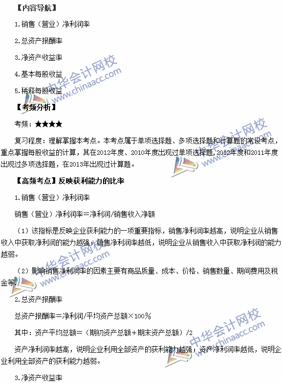 我们一起来学习2015税务师考试《财务与会计》高频考点:反映获利能力的比率,本考点属于《财务与会计》第七章财务分析与评价的内容。