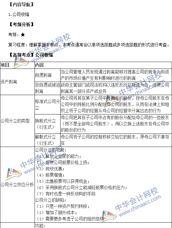 我们一起来学习2015税务师考试《财务与会计》高频考点:公司收缩,本考点属于《财务与会计》第六章资本运营的内容。