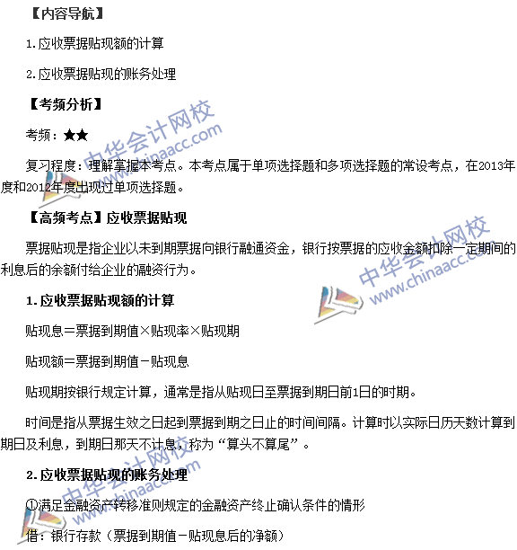 我们一起来学习2015税务师考试《财务与会计》高频考点:应收票据贴现,本考点属于《财务与会计》第九章流动资产(一)的内容。