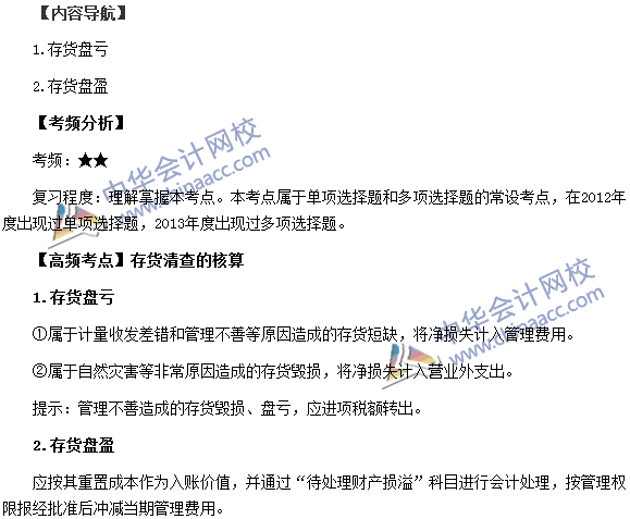 我们一起来学习2015税务师考试《财务与会计》高频考点:存货清查的核算,本考点属于《财务与会计》第十章流动资产(二)的内容。