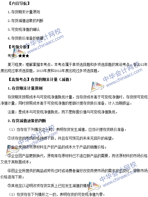 我们一起来学习2015税务师考试《财务与会计》高频考点:存货的期末计量(减值),本考点属于《财务与会计》第十章流动资产(二)的内容。