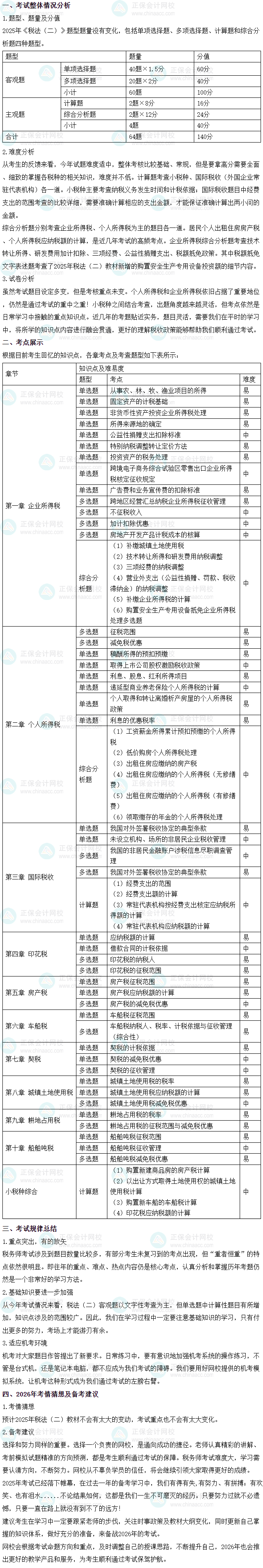 2025年税务师《税法(二)》考情分析及2026年考情预测