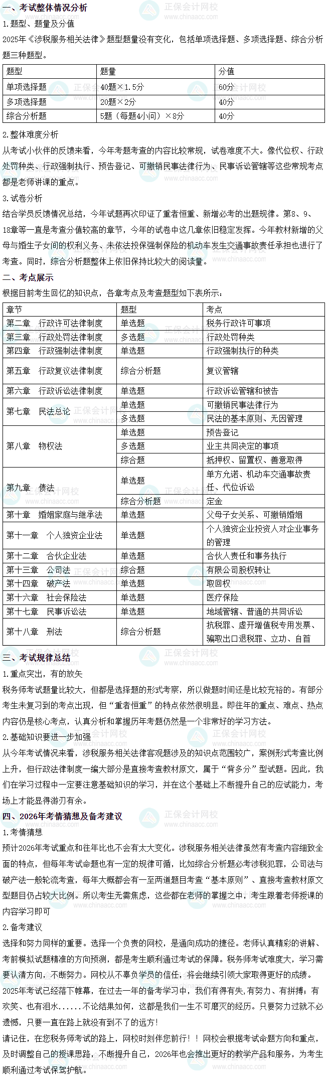 2025年税务师《涉税服务相关法律》考情分析及2026年考情预测