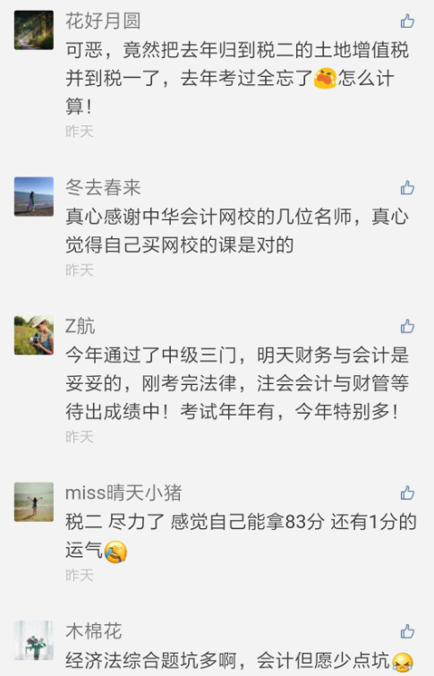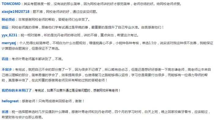 2017年税务师考试于11月11日至12日举行。已经考完的小伙伴们纷纷在正保会计网校论坛、正保会计网校注册税务师官微等平台,针对考试难度、考场趣闻等发表了精彩有料的评论,从他们的评论中,你也许能get不少考试信息哦,一起来看看吧!