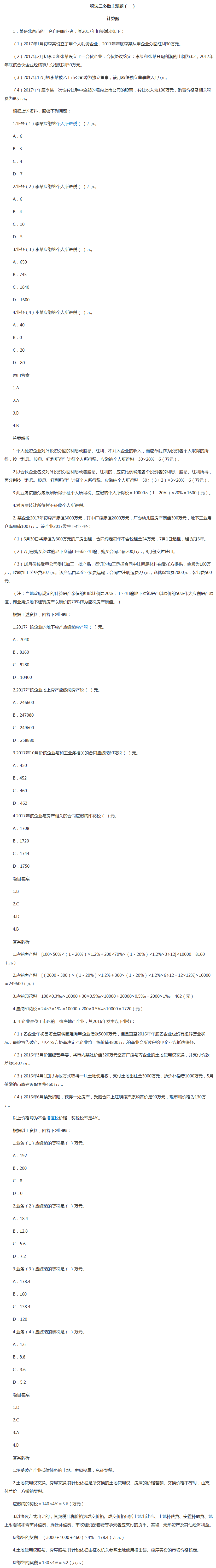 2018年税务师备考只剩下半个月了,到了全面做题的时刻了!实践是检验知识点是否掌握的最好方法之一。正保会计网校教务老师废寝忘食为大家整理了税务师考前必做题目,方便大家从容应对考试,考前一波猛冲!以下是《税法二》科目必做主观题。想看税务师考前大模考、易错题、税务师试题等,请前往2018税务师考试考前冲刺题典>>