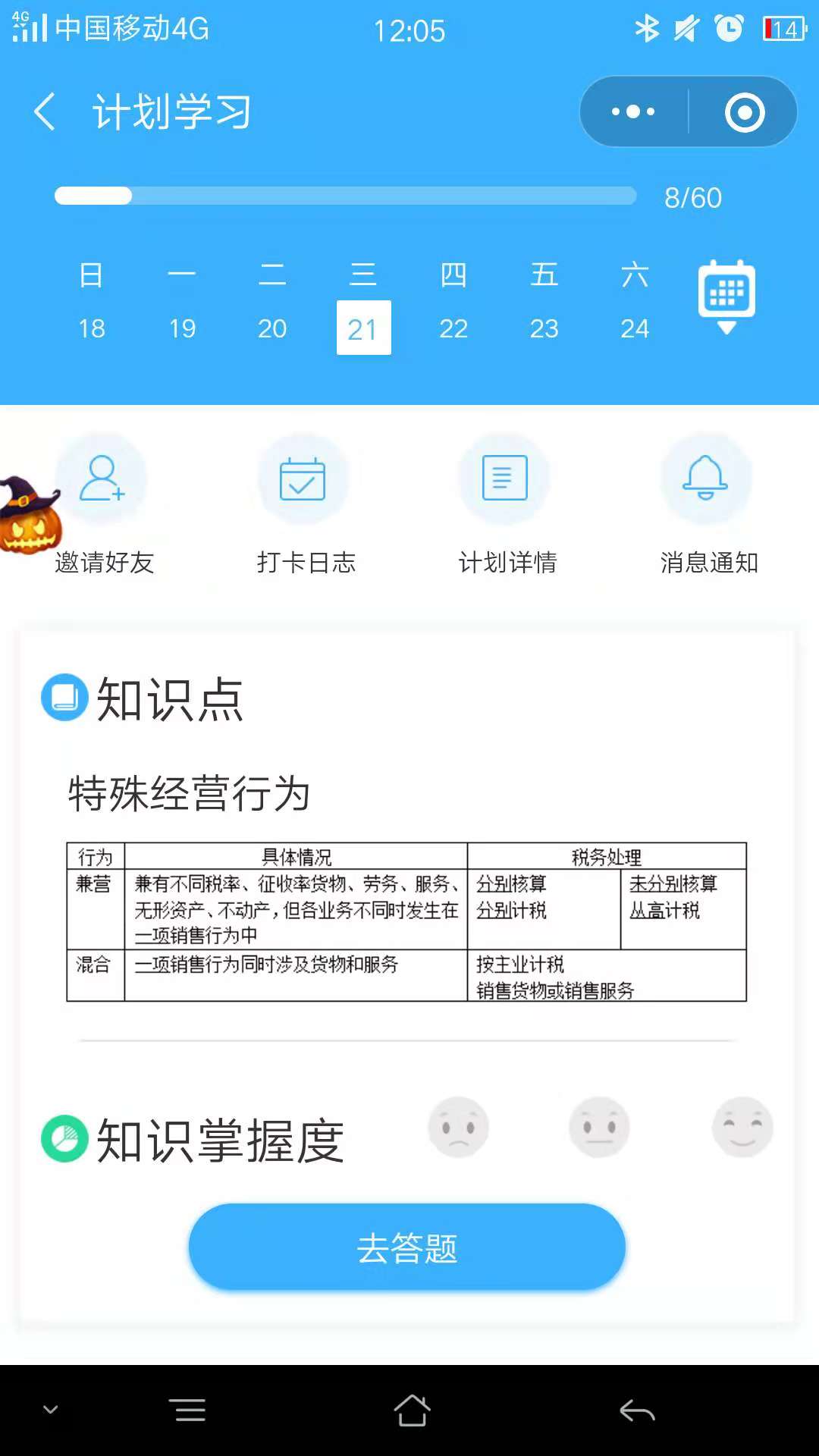 2.每个打卡计划中,每天一个考试必学知识点 + 5道选择题,答完即为打卡成功,每天进步一点点,成功可以量化!一天5道题,一年就是1825道题啊,差距就是这样一点点拉开的!