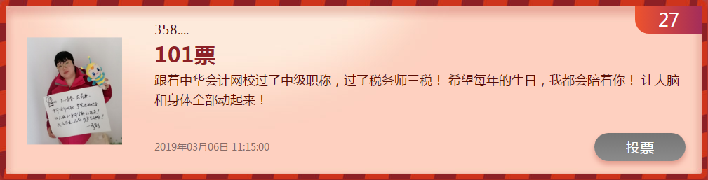有这么多同行善友为你加油打气,如果你想考2019年税务师,却又因为基础薄弱而徘徊不前,甚至在坚持和放弃间摇摆不定,那么,正逢2019年初级会计职称报名之际,不妨多多关注2019年初级会计职称报名的相关信息。快速了解2019年初级会计职称报名>>