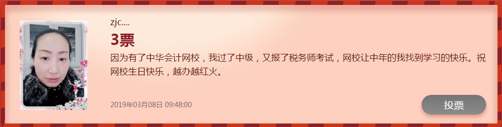 网校优秀学员:“从2018年5月到2018年11月,就开始了中级、税务师的交叉学习,提前做好了学习计划,什么时候学中级的课程,什么时候学税务师课程,每天学什么内容都做了记录,要保证自己每天的学习时间在7个小时左右,每周的学习时间在40个小时以上(因为周末要陪孩子们,学习时间比较少),就这样坚持到了中级的考试、税务师的考试,在这一年多的时间里,放弃了所有出去玩的机会,暑假、十一老公带着儿子闺女出去旅游,我一个人在家学习,放弃娱乐坚持学习的结果就是我2018年的目标都实现了,一次性通过了中级和税务师的考试,现在我将为2019年的目标而努力。”
