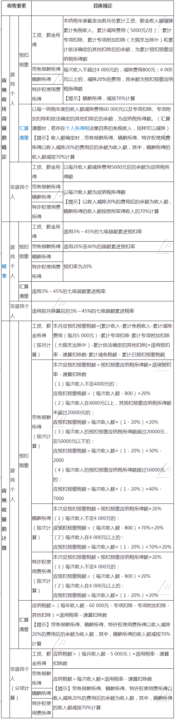 2.个人所得税由原来的分类征收,改革为当前的综合与分类相结合的征收模式,内容变化较多。一是税率的变化;二是工资薪金所得、劳务报酬所得、稿酬所得、特许权使用费所得由原来的按次或按月征收,改为当前的按年计征的变化;三是扩大了扣除范围,增加了专项扣除和专项附加扣除的变化;四是增加了平时预缴和年终汇算清缴的变化。