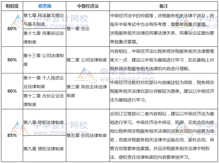 2019税务师备考正在火热进行中,很多报考了中级的考生也报考了税务师,实为明智之举!众所周知,中级与税务师的考查范围有很大的重合,下面,正保会计网校专门为考生总结了税务师税法二科目与中级经济法的相似度,并附上重点学习章节,希望帮助大家抓住复习重点。