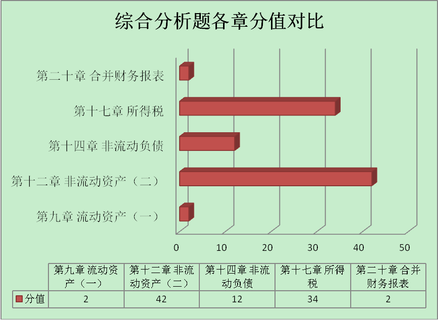 推论:从柱形图中可以看出,综合分析题常考的章节是第十二章、十七章,其次是第十四章。而第九章、第二十章的内容会考查一至二小题。综合分析题的题目相对有一定难度,考查面广,需要考生有一定的综合掌握能力。所以在基础打牢的情况下,大家可以提高一下自己的能力,重点练习有关第十二章、第十四章、第十七章的综合分析题,勤加练习,在做题过程中寻找出题人的考查角度,边做题边总结。