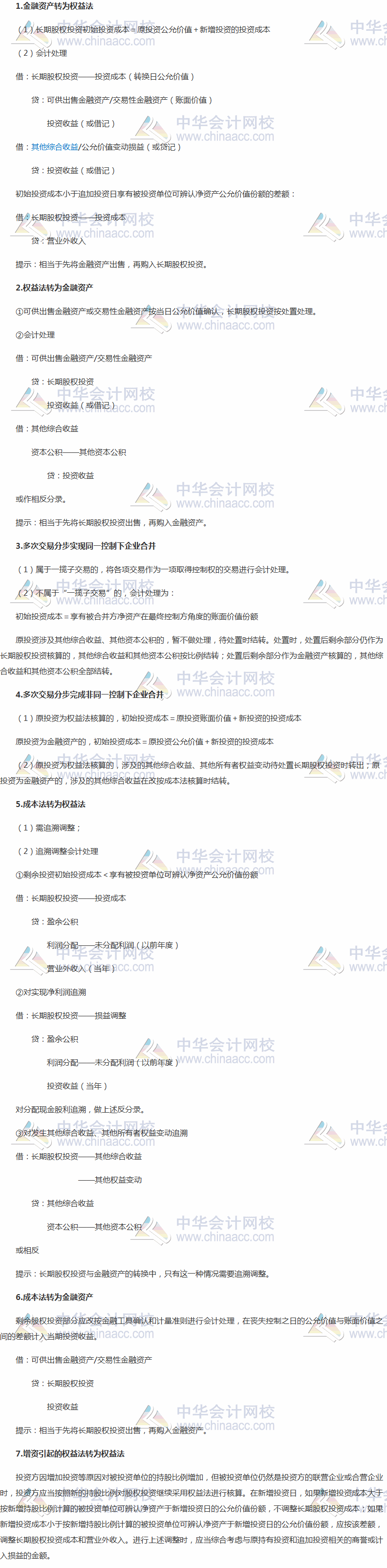 【高频考点】权益法与成本法的转换、金融资产与长期股权投资成本法或权益法的转换