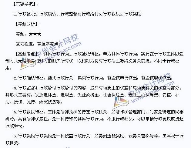 我们一起来学习2014年《税收相关法律》高频考点:具体行政行为。本考点属于《税收相关法律》第一篇第一章行政法基本理论第三节行政行为的内容。