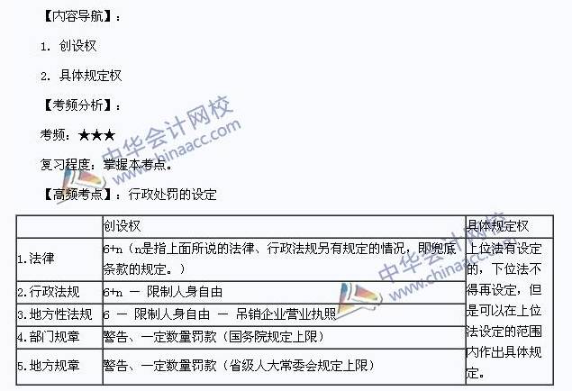 我们一起来学习2014年《税收相关法律》高频考点:行政处罚的设定。本考点属于《税收相关法律》第一篇第三章行政处罚法律制度第二节行政处罚的种类和设定的内容。