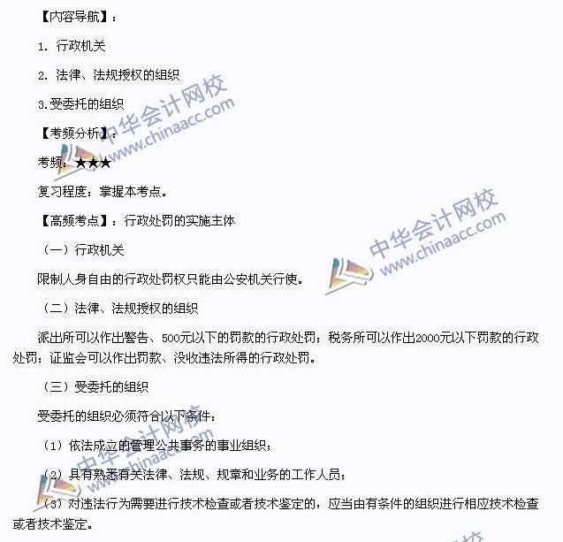 我们一起来学习2014年《税收相关法律》高频考点:行政处罚的实施主体。本考点属于《税收相关法律》第一篇第三章行政处罚法律制度第三节行政处罚实施主体、管辖及适用的内容。