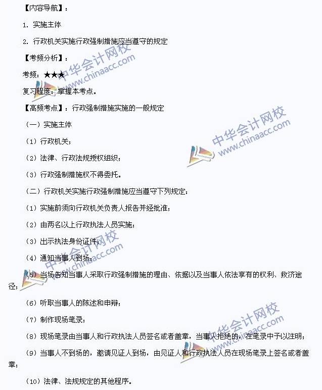 我们一起来学习2014年《税收相关法律》高频考点:行政强制措施实施的一般规定。本考点属于《税收相关法律》第一篇第四章行政强制法律制度第二节行政强制措施的实施的内容。
