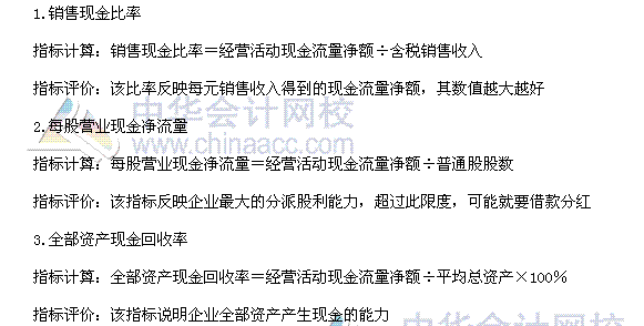 2. 获取现金能力的比率(销售现金比率、每股营业现金净流量、全部资产现金回收率)