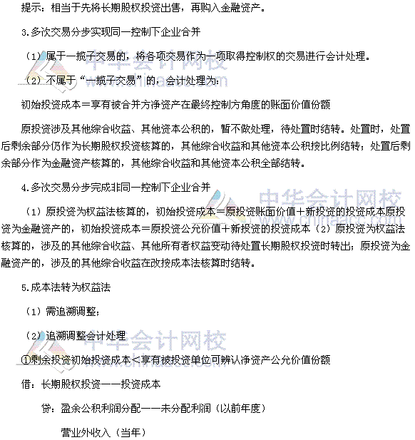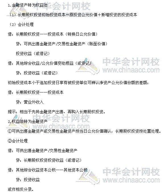 【高频考点】权益法与成本法的转换、金融资产与长期股权投资成本法或权益法的转换
