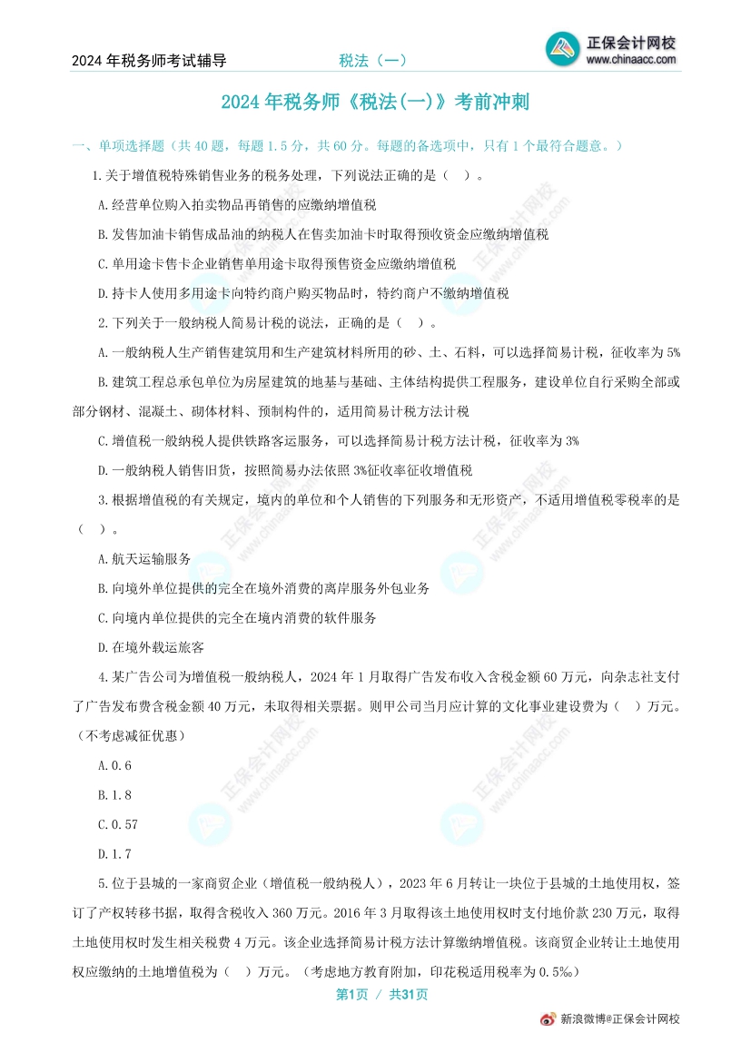 下一篇:2024年税务师《财务与会计》考前救命讲义
