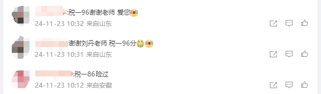2024年税务师考试成绩查询入口已开通(立即查分>),首先恭喜大家顺利通过考试!这不,又一波学员来报喜啦,感谢刘丹老师,顺利过关!