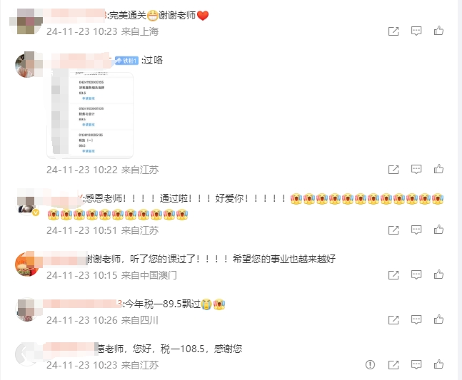 2024年税务师考试成绩查询入口已开通(立即查分>),考试顺利通过,千言万语总结一句话:感谢&感恩老师!终于顺利上岸!