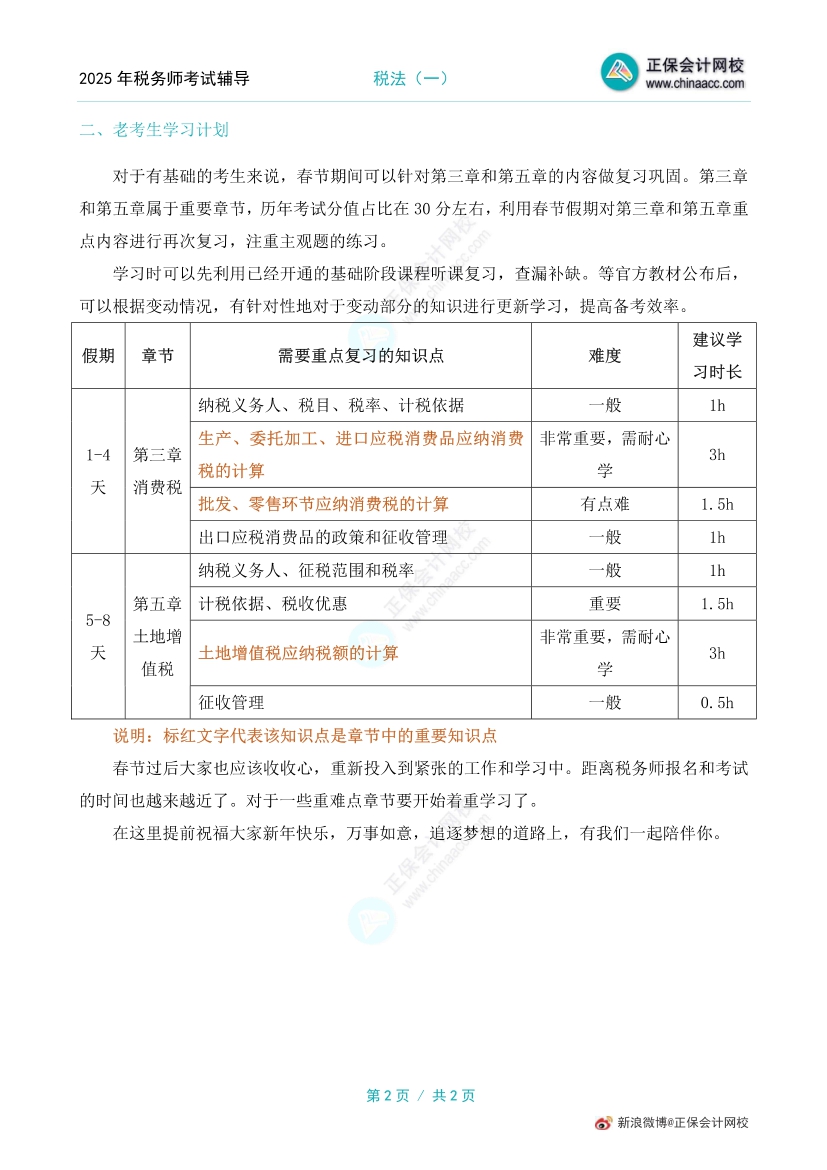 2025年税务师《税法(一)》各章节建议学习时长及重要性